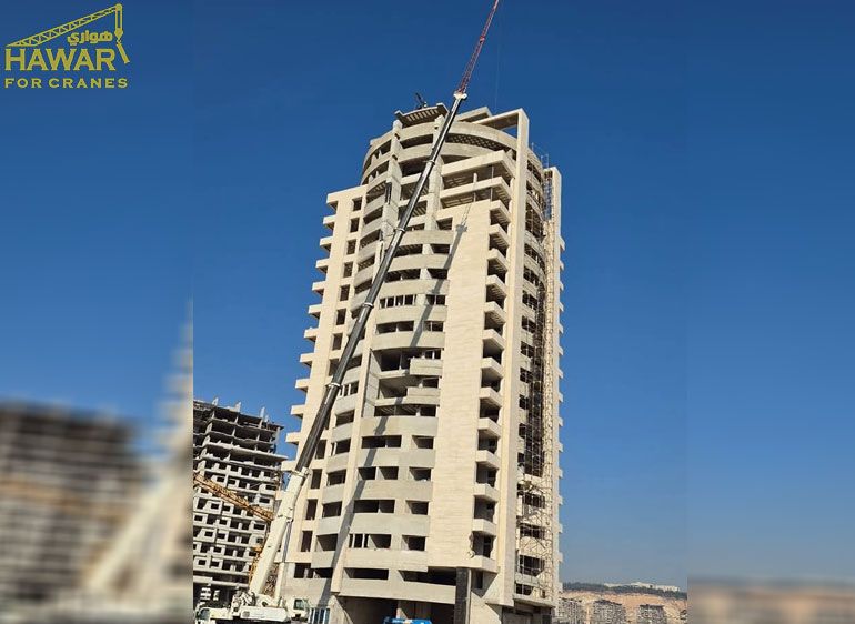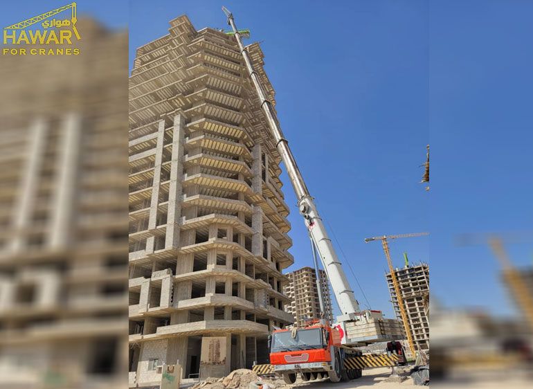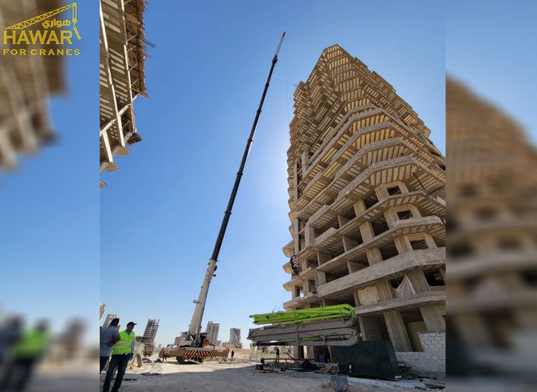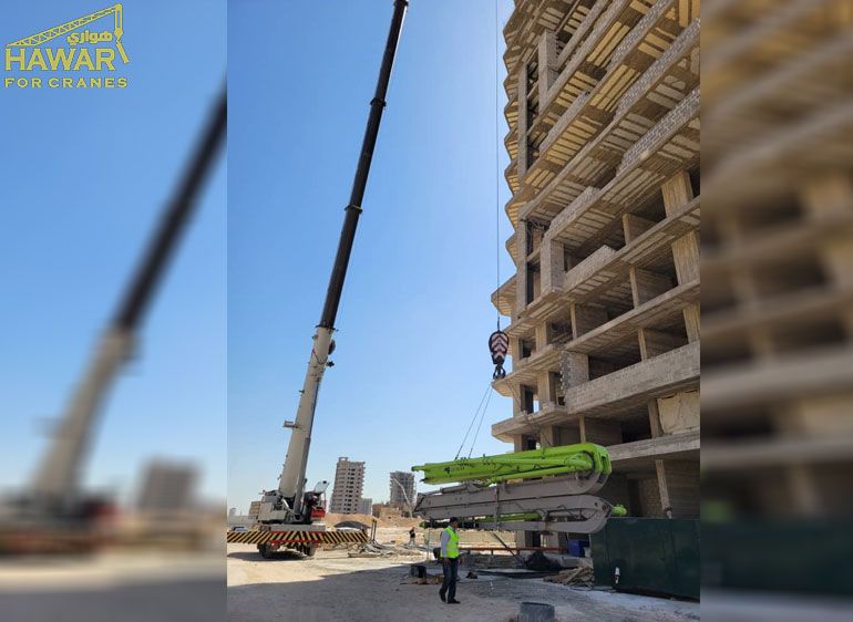 رفع وتركيب وتنزيل مضخات بيتون ثابتة بارتفاعات تصل إلى ١٠٠ متر ووزن ٧ طن في ماروتا سيتي